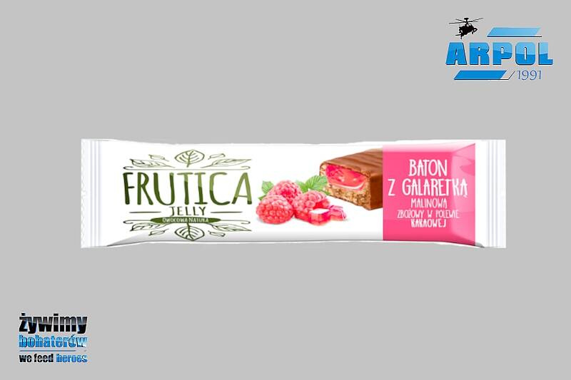 Baton zbożowy z galaretką malinową w polewie kakaowej