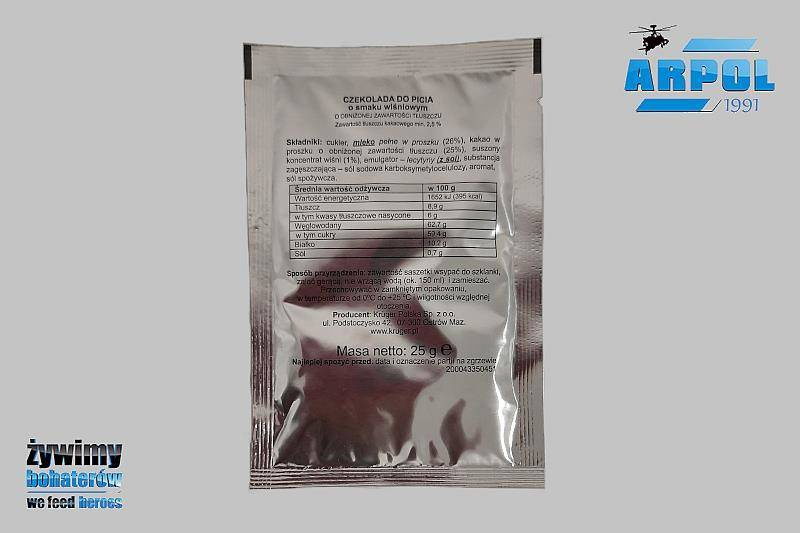 Czekolada do picia o smaku wiśniowym o obniżonej zawartości