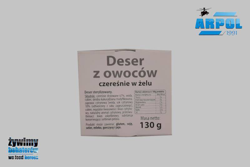 Składniki: czereśnie drylowane 67%, woda, cukier, skrobia kukurydziana