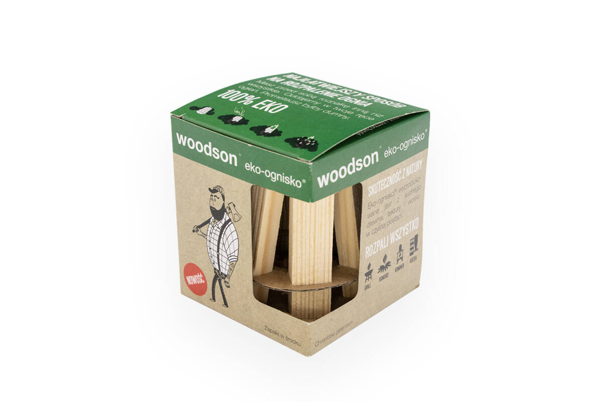 Opakowanie zawiera 1 szt. eko ogniska oraz 5 szt. zapałek z draską.