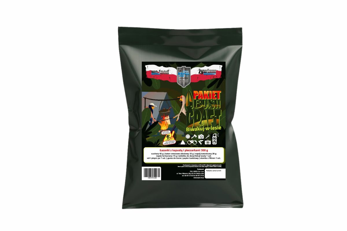 Pakiet bushcraft – wersja wegetariańska to zestaw dla każdego miłośnika survivalu i buschraftu. Idealny dla osób biwakujących w lesie i lubiących bezpośredni kontakt z naturą.