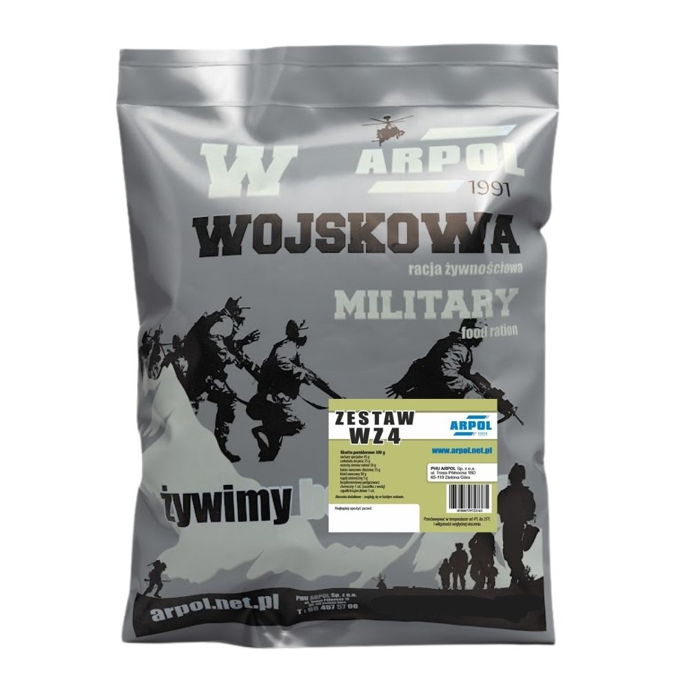 Racja żywnościowa z posiłkiem podgrzewanym przy użyciu bezpłomieniowego podgrzewacza chemicznego.